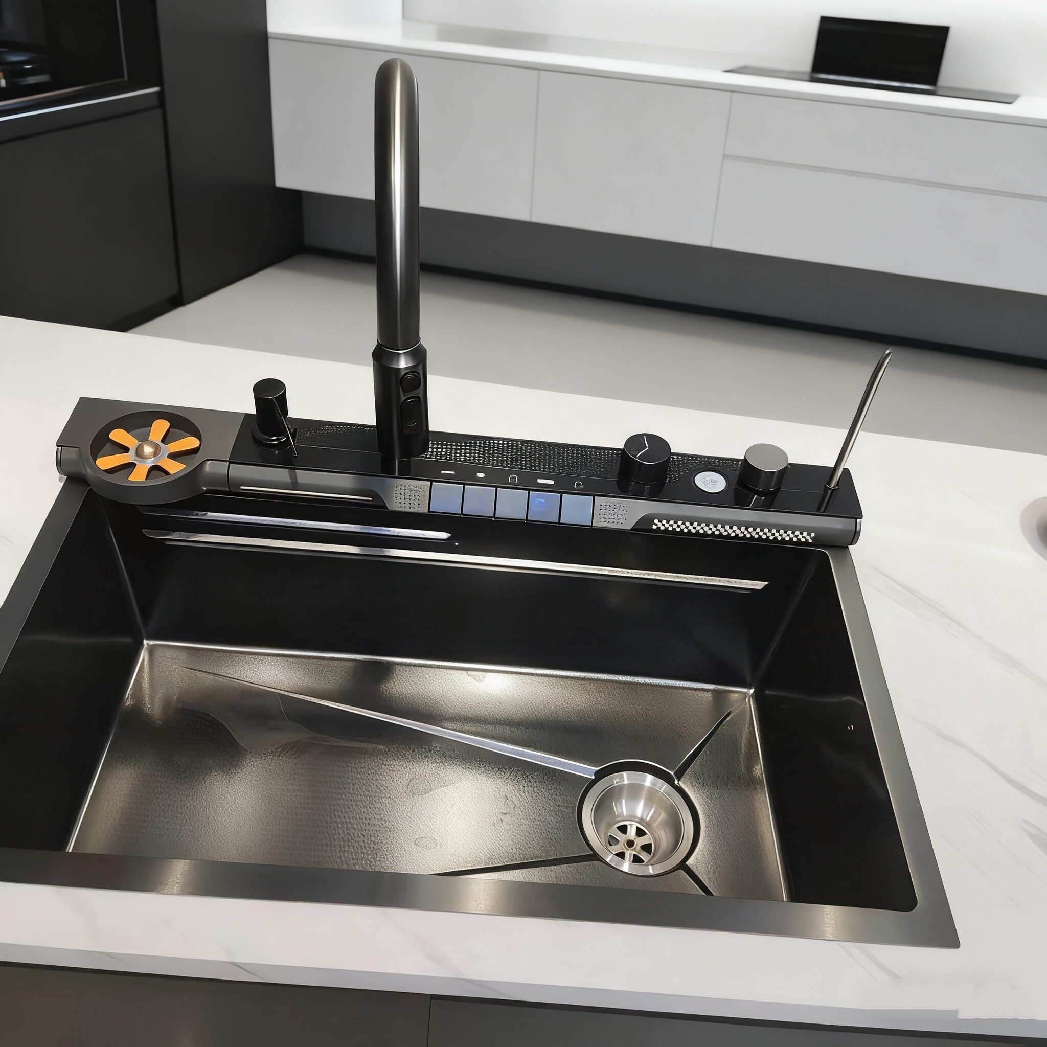 The Ultra-Modern Stainless Steel Kitchen Sink with High-Arc Faucet combines elegant design with exceptional functionality to enhance any kitchen space. Constructed from high-quality stainless steel, this sink offers superior durability that resists corrosion, stains, and scratches even with heavy daily use.