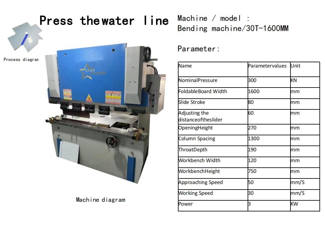 Process 6 Press the  water line Bending machine/30T-1600MM 2600x1400x2000mm 2.6 1.4 3